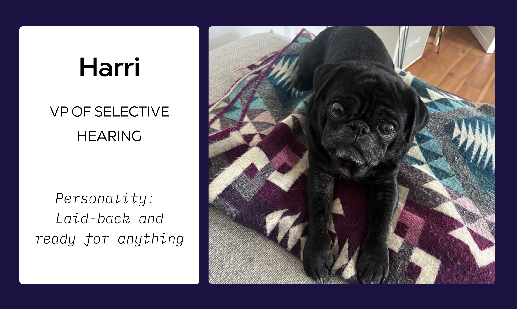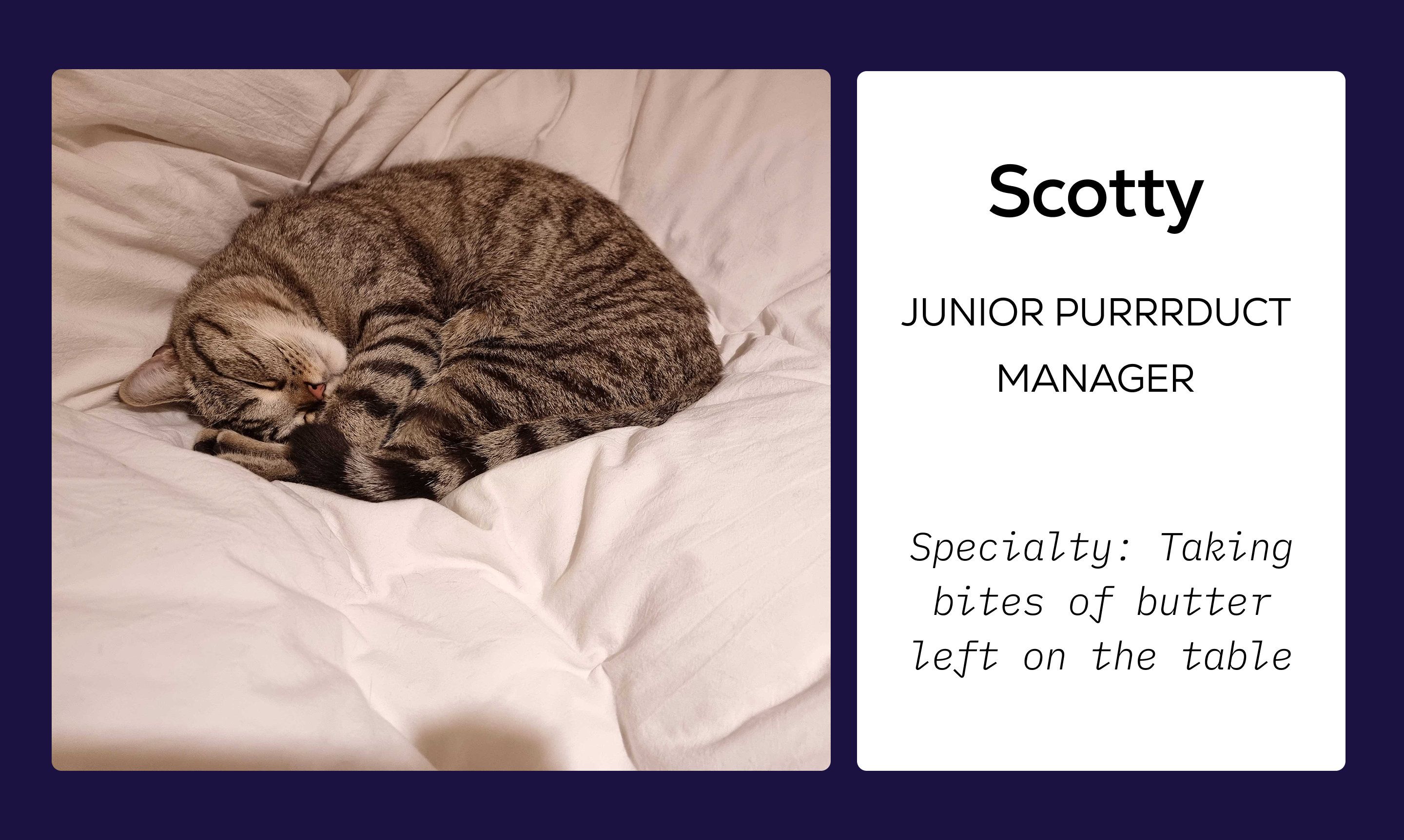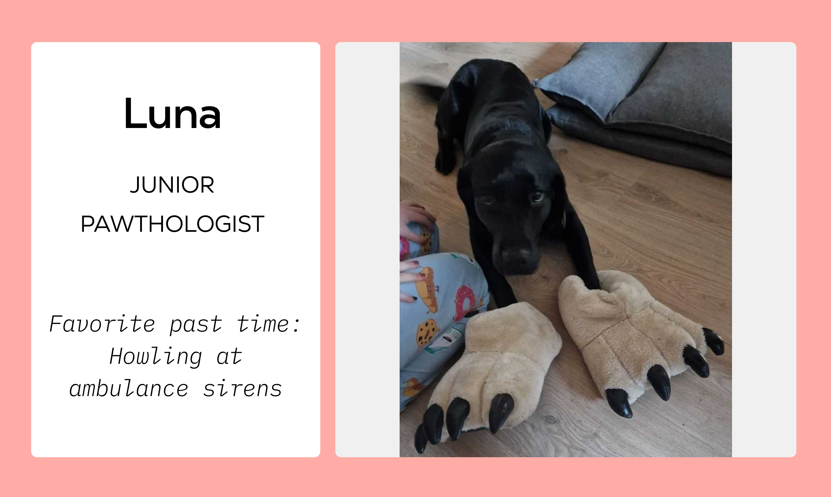 While our human colleagues focus on transforming the future of precision medicine, there's another team working tirelessly behind the scenes. They are experts in keeping a consistent schedule, reminding us when it's time for a break, and bringing smiles to everyone's faces. From the dog who serves as an in-house Pawthologist to the cat who monitors the development of our Purrduct, our furry friends are essential members of our team who bring us joy every day. Let's meet some of the pets who make our team complete!
